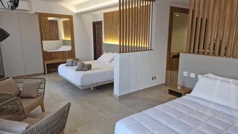 Die Zimmer sind mit Klimaanlage und Heizung ausgestattet. Zustellbetten können angefordert werden. Zur Standardeinrichtung gehören ein Safe, eine Minibar und ein Minikühlschrank. Ein Direktwahltelefon, ein TV-Gerät mit Satelliten-/Kabelempfang, ein Radio und kostenloses WiFi sind ebenfalls vorhanden. Die Badezimmer sind mit einer Dusche und Badewanne sowie einem Haartrockner ausgestattet. Rollstuhlgerechte Zimmer sind verfügbar und es gibt sowohl Familien- als auch Nichtraucherzimmer.