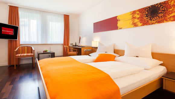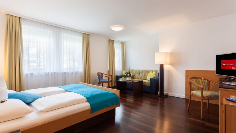 Im Hotel Germania warten 38 Zimmer in verschiedenen Stilrichtungen mit stylischem Mobiliar auf Sie! Ob trendiger Loft-Charakter oder freundlich mit warmem Farbkonzept, die Zimmer sind mit echtem Holzparkett und wertigen Materialien ausgestattet. Bestens für Allergiker geeignet!