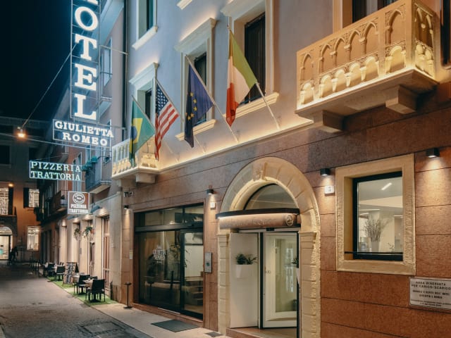 Wir befinden uns im Herzen der Stadt, 50 Meter von der Arena entfernt, wo die Oper noch lebt und wo große internationale Stars ihre Konzerte veranstalten. Unsere Straße ist auf der einen Seite mit der Piazza Brà und auf der anderen Seite mit der Via Mazzini verbunden, die auch als "Einkaufsstraße" und für ihre schönen Geschäfte und bekannten Marken berühmt ist. In wenigen Schritten erreichen Sie die Piazza delle Erbe und in einem charmanten Innenhof den romantischen Balkon von Romeo und Julia. Die herrliche Lage des Hotels bietet auch den Vorteil einer unendlichen Auswahl an Restaurants und Bars, um auch am Tisch ein bisschen Verona zu genießen oder unsere ausgezeichneten Weine zu entdecken.