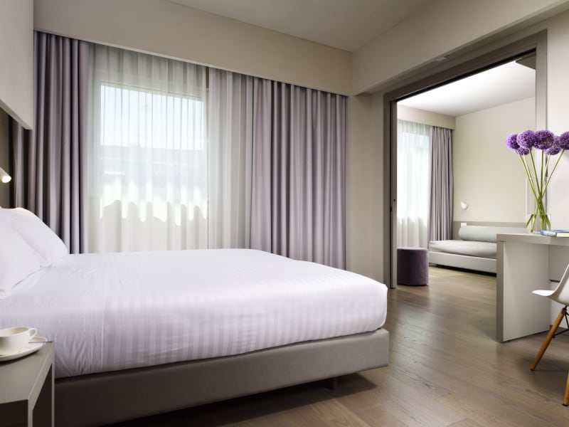 Die Zimmer im Glance Hotel sind mit Liebe zum Detail eingerichtet und auf Komfort und einfache Nutzung durch unsere Gäste ausgelegt. Die Einrichtung nutzt wesentliche Geometrien und in Kombination mit einzigartigen Wohnaccessoirs entsteht in den Zimmern eine entspannende Atmosphäre, die in einer Reihe von Besonderheiten klar wird, wie beispielsweise: hypoallergener Parkettboden (Echtholz), unentbehrlich für Gäste mit Allergien oder einem Haustier im Schlepptau Schallschutzfenster und isolierte Außenwände, um die Schalldämmung des Raumes und einen ruhigen Schlaf zu gewährleisten Modernes Heizsystem – Klimaanlage (DAIKIN VRV), das es dem Gast ermöglicht, die Temperatur in seinem Zimmer unabhängig von der Jahreszeit zu regulieren große Duschen, damit all unsere Gäste absoluten Komfort erleben Doppelmatratzen mit den Maßen 180 x 200 cm und Einzelmatratzen mit 90 x 200 cm, mit Luxuslinie für alle Wäsche (Oberlaken und Handtücher), für maximalen Komfort während der Ruhezeiten. Tee- und Kaffeekocher mit Produkten aus der Natursan-Linie (La Via del Tè, ein Unternehmen aus Florenz) Espressomaschine in der Junior Suite, Deluxe und Superior Zimmer