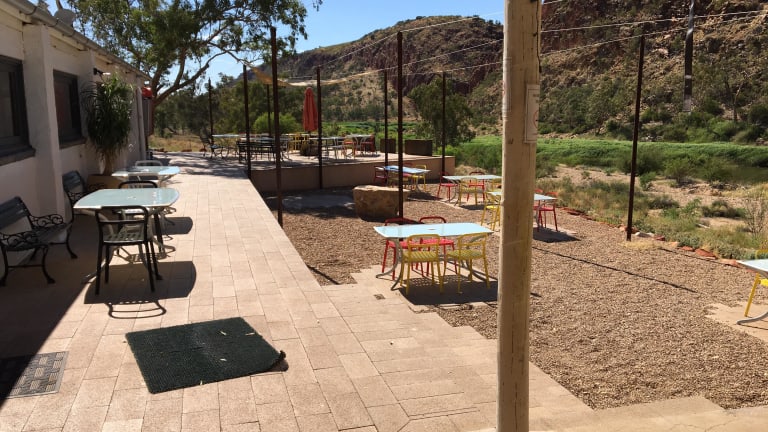 Das Namatjira Restaurant and Gallery im Hotel Discovery Parks - Glen Helen bietet eine gemütliche Atmosphäre im Freien, in der Sie regionale Küche genießen können. Entspannen Sie am offenen Kamin und lassen Sie sich von den köstlichen Gerichten verwöhnen.