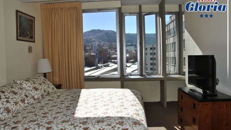 Das Hotel Gloria befindet sich im Stadtzentrum von La Paz, in der Nähe des Murillo Parks, und bietet eine gute Anbindung an den Finanz- und Geschäftsbezirk. Einkaufsmöglichkeiten und eine Vielzahl von gastronomischen Einrichtungen sind in nur wenigen Gehminuten erreichbar. Der Titicacasee liegt etwa 90 km entfernt, während der Flughafen ca. 600 m vom Hotel entfernt ist.