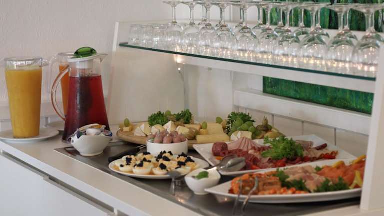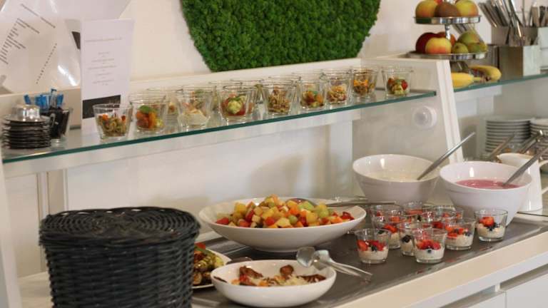 Ein reichhaltiges Frühstück wird in Form eines Buffets angeboten. Zusätzlich stehen spezielle Speisen für Gäste mit besonderen Ernährungsbedürfnissen auf Anfrage zur Verfügung.