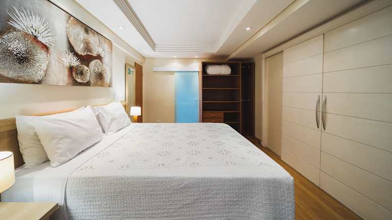 Die Zimmer sind mit einer Klimaanlage sowie einem Doppelbett ausgestattet. Zudem verfügen sie über eine Minibar, einen Fernseher, ein Telefon und kostenloses WiFi. Jedes Zimmer hat ein eigenes Badezimmer mit Dusche. Es stehen auch rollstuhlgerechte Zimmer mit barrierefreiem Bad zur Verfügung. Familien- und Nichtraucherzimmer sind ebenfalls vorhanden.