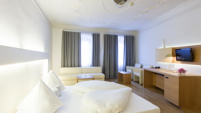 HIMMELS(T)RÄUME Die Zimmer im Hotel Goldener Stern Die Zimmer im Goldenen Stern sind mal modern, mal rustikal, mal fast schon vornehm anmutend. Wer aus ihren Fenstern blickt, sieht die belebte Andreas-Hofer-Straße vorne – oder die ruhige Sterngasse hinten. Hier ist kein Zimmer wie das andere, jedes hat seinen ganz eigenen Reiz. Wie die Sterne eben! Ob das ein Zufall ist? Find’s heraus, schau sie dir an.