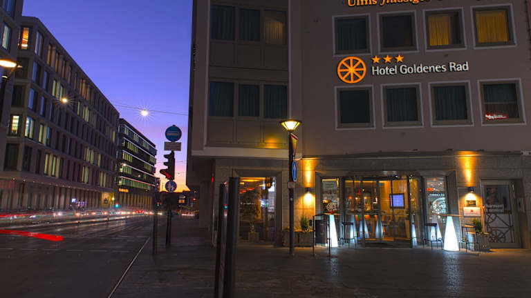 Das Hotel Goldenes Rad liegt im Herzen von Ulm, gegenüber dem Rathaus und gleich um die Ecke von der gotischen Kathedrale. Der Bahnhof ist in 10 Gehminuten erreichbar.