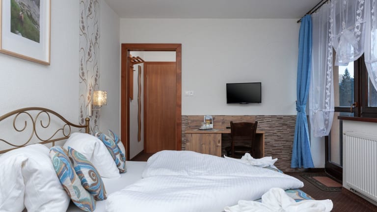 Die Zimmer im Hotel Goralturist verfügen über ein eigenes Bad mit Dusche, kostenfreies WLAN und einen TV.