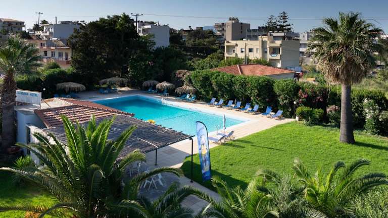 Das Gorgona Hotel in Ammoudara ist ein charmantes familiengeführtes Hotel, das von üppigen Gärten umgeben ist. Hier können Sie sich auf einen entspannten Aufenthalt freuen, nur wenige Schritte vom preisgekrönten Sandstrand entfernt. Das Hotel bietet komfortable Zimmer mit Annehmlichkeiten wie Klimaanlage, TV und eigenem Balkon. Entspannen Sie am Pool oder erkunden Sie die Umgebung mit dem Bus, der Sie direkt in die nahegelegene Stadt Heraklion bringt.