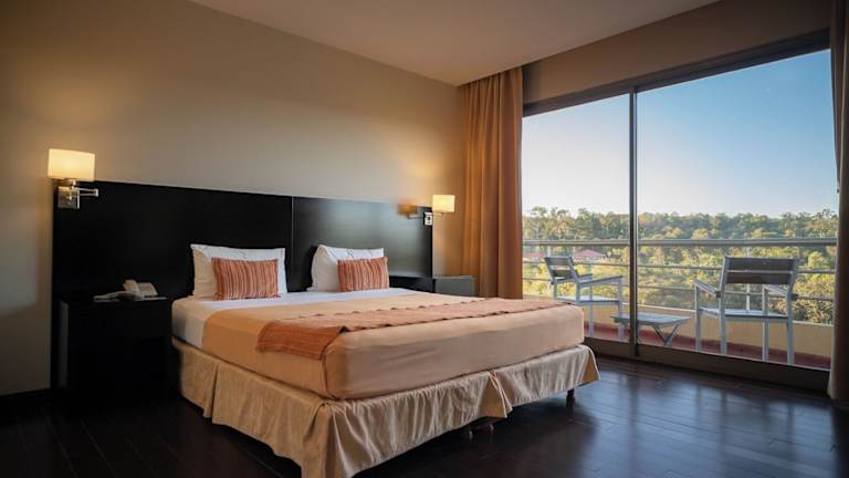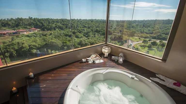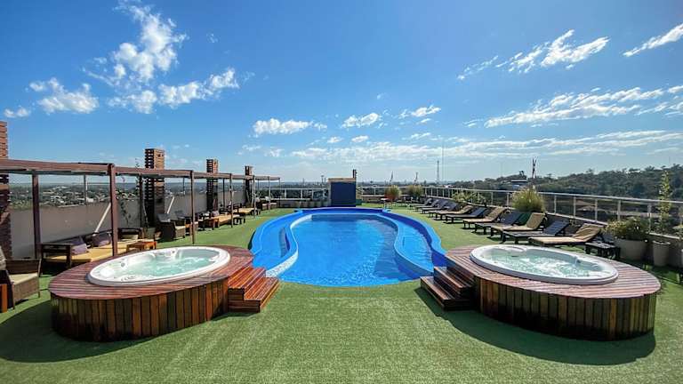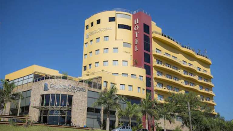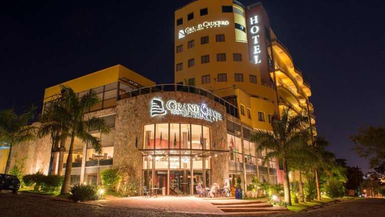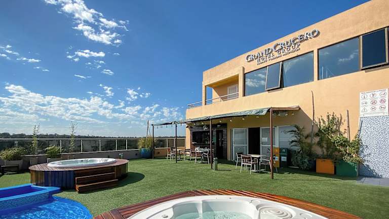 Das Grand Crucero Hotel in Puerto Iguazú bietet seinen Gästen einen komfortablen Aufenthalt mit Annehmlichkeiten wie einem Außenpool, einem Fitnesscenter und kostenfreiem WLAN. Die hellen und geräumigen Zimmer sind klimatisiert und verfügen über ein eigenes Bad. Genießen Sie ein köstliches Frühstücksbuffet mit regionalen Zutaten und bestellen Sie Gourmetgerichte im hoteleigenen Restaurant. Entspannen Sie am Pool oder trainieren Sie im Fitnesscenter. Das Hotel befindet sich in zentraler Lage, nur wenige Gehminuten vom Kasino entfernt. Der Busbahnhof und der internationale Flughafen Puerto Iguazú sind ebenfalls bequem zu erreichen.
