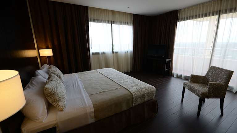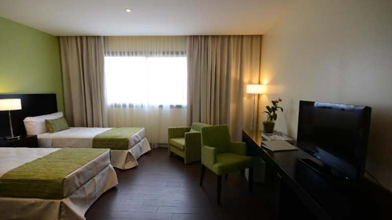 Die Zimmer im Grand Crucero Hotel sind hell, geräumig und bieten modernen Komfort. Jedes Zimmer ist klimatisiert und beheizt und verfügt über ein eigenes Bad. Einige Zimmer verfügen außerdem über einen eigenen Balkon mit Stadtblick. Zur Ausstattung gehören Plasma-TVs und kostenfreies WLAN.