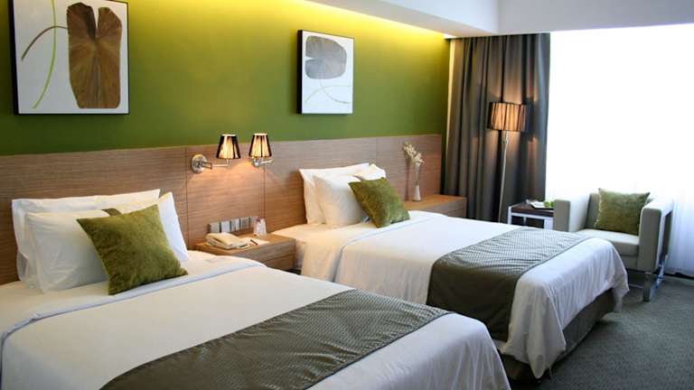 Die Zimmer sind mit Klimaanlage, Minibar, Kühlschrank und Kaffee-/Teemaschine ausgestattet. Ein Schreibtisch, ein Telefon mit Direktwahl, ein TV-Gerät mit Satellitenempfang sowie kostenfreies Wifi gehören ebenfalls zur Ausstattung. Die Badezimmer verfügen über Dusche, Badewanne, Haartrockner und kostenlose Pflegeprodukte. Es gibt Familien-, Nichtraucher- und Raucherzimmer sowie rollstuhlgerechte Zimmer.