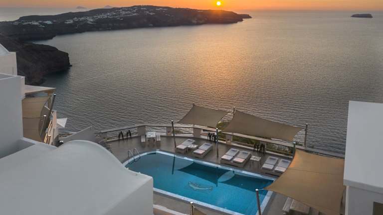 Das Grand View befindet sich am Rande der Caldera, in der Nähe des charmanten Dorfes Megalochori. In der Umgebung sind traditionelle Restaurants und lokale Tavernen zu finden. Beliebte schwarze Strände sowie der bekannte rote Strand sind nur eine 5-minütige Autofahrt entfernt. Die malerische Stadt Fira erreicht man in 7 Minuten mit dem Auto.