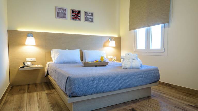Die klimatisierten Zimmer verfügen über ein Marmorbad, einen Balkon (in den meisten Zimmern), einen Safe, eine Minibar und einen Schreibtisch. Zur weiteren Ausstattung zählen ein Flachbild-Sat-TV, ein Radio, ein Telefon und kostenloses Wifi. Die Badezimmer sind mit einer Dusche, einem Haartrockner und Kosmetikartikeln ausgestattet. Es sind auch rollstuhlgerechte Zimmer mit barrierefreiem Bad verfügbar.