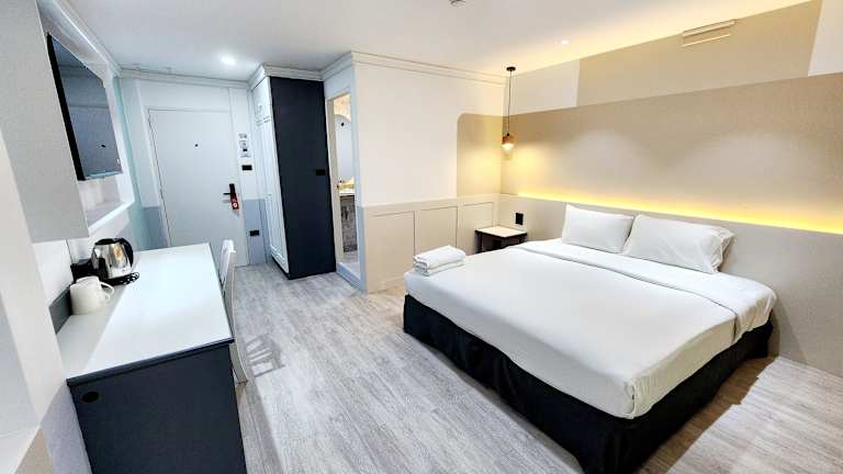 Die Zimmer sind mit Klimaanlage, einem Balkon, einem Kühlschrank, einem Safe und Wifi ausgestattet. Jedes Zimmer verfügt über ein eigenes Badezimmer mit Dusche und einem Haartrockner. Die Standardausstattung umfasst ein Doppelbett.