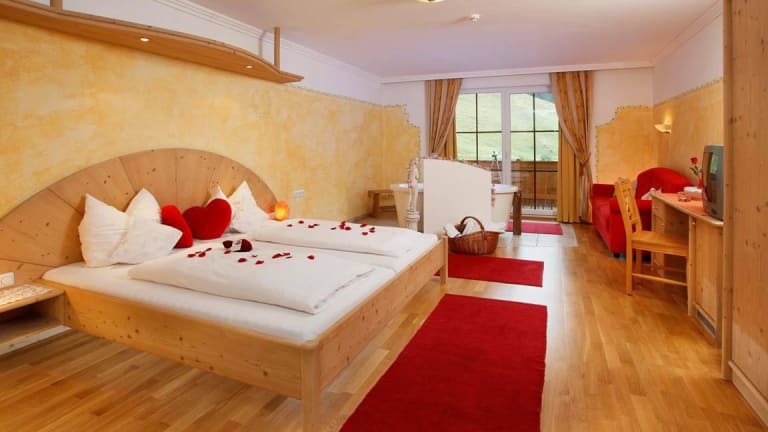 Verwöhnhalbpension Ökologische Einzel– und Doppelzimmer, Themen-Suiten mit Whirlbadewanne , offenen Kamin, Himmelbett, Romantik-Suite, Familienzimmer
