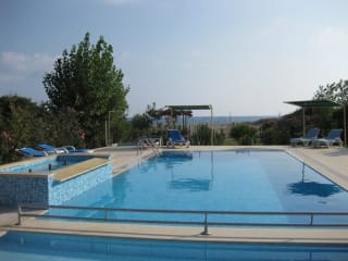 Von der Speiseterrasse sind es nur wenige Schritte zum Pool mit getrennten Kinderplanschbecken, Brause und Liegeplätzen. Dazu ein eigener Strandabschnitt im ruhigsten Teil des etwa 5 km langen Kizilot-Strandes. Liegen unter Sonnendächern stehen bereit.