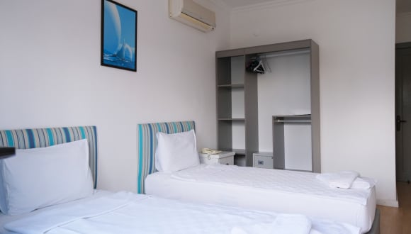 Our hotel is located by the sea at the most beautiful side of the town.Bar street is 500m distance,Bodrum center 3 km,airport 33 km distance,shopping centers 100 m distance,taxi station 30 m distance and bus station 25 m distance.If you like vacation that has silence,calm down and romantic our place is the right choice.Our hotel is family running hotel that helps your expectations.