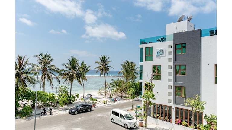 Das Hotel h78 ist ein preisgekröntes Hotel und gehört zu den ältesten Hotels in der Region um Male. Es hat sich über fast ein Jahrzehnt hinweg für exzellenten Kundenservice ausgezeichnet und bietet seinen Gästen konsequente Behandlung und Service. Die Terrasse des Hotels bietet eine hervorragende Möglichkeit, in entspannter Atmosphäre die ununterbrochenen Ausblicke auf den Ozean zu geniessen, während man die Mahlzeiten des hauseigenen Restaurants oder den Sonnenaufgang bewundert.