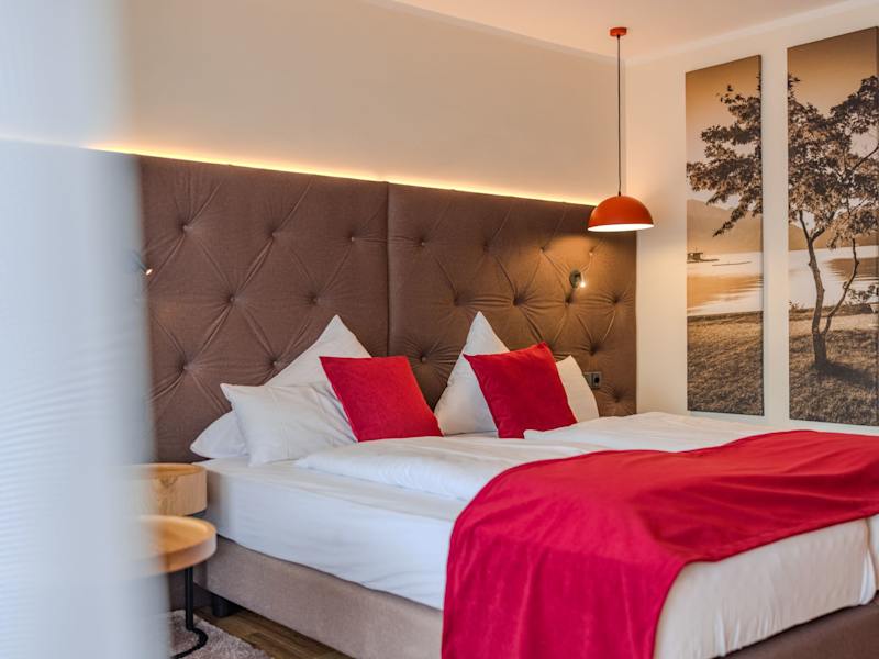 GEMÜTLICHE ZIMMER IM HOTEL HABERL AM ATTERSEE Komfortable Einrichtung Die 25 Nichtraucherzimmer unseres Hauses verfügen alle über Dusche mit WC, TV, Telefon, gratis WLAN, Safe, Balkon oder Loggia. Ein Lift sorgt für zusätzlichen Komfort. Zudem steht unseren Gästen eine gemischte Sauna mit Saunarium zur Verfügung. Die Zimmer können am Anreisetag ab 14.00 Uhr bezogen werden, am Abreisetag muss, falls nicht anders vereinbart, bis 11.00 Uhr ausgecheckt werden. Freuen Sie sich besonders auf die komplett erneuerten Zimmer, die ab Frühjahr 2026 alle in neuem Glanz erstrahlen. Die modernisierten Zimmer bieten noch mehr Annehmlichkeiten: Holzboden, Verdunklungsvorhänge für eine erholsame Nachtruhe, ein Minikühlschrank sowie zahlreiche kleine Details, die Ihren Aufenthalt unvergesslich machen. Unsere Zimmer vereinen modernen Komfort mit stilvollem Design und laden zum Entspannen und Genießen ein.
