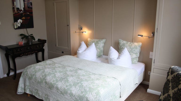 Sieben komfortable Zimmer mit hohen Decken, individuell und stilvoll eingerichtet, stehen den Gästen zur Verfügung. Obwohl das Haus nur wenige Zimmer hat, ist es geräumig und großzügig. Im Salon sitzt man bequem und gemütlich. Bei einem guten Buch und einem Glas Wein kann man den Abend ausklingen lassen. Ein kleines charmantes Hotel für die privaten Momente unterwegs. Gemütliche Basisstation für eine kleine Kulturreise durch Schleswig-Holsteins Geschichte.