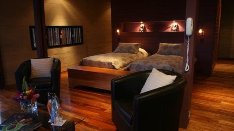 Die Bungalows der Hamadryade Lodge sind stilvoll eingerichtet und verfügen über eine Sitzecke. Die Bungalows sind so gestaltet, dass sie in die natürliche Umgebung integriert sind.