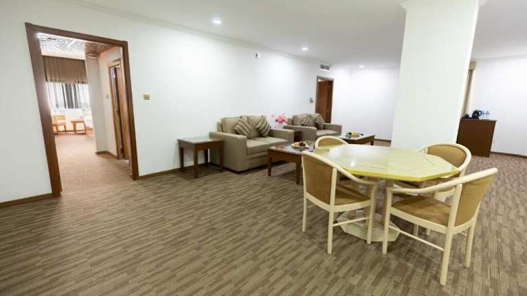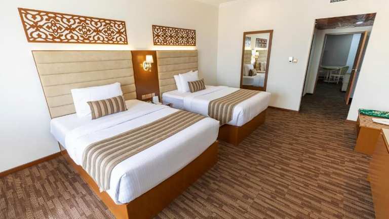 Das Hamdan Plaza Hotel Salalah, ein HTG Hotel, verfügt über 180 Zimmer, die mit einem Aufzug erreichbar sind. An der Rezeption steht Ihnen das freundliche Personal zur Verfügung und es gibt auch eine Gepäckaufbewahrung und einen Safe. WLAN ist in den öffentlichen Bereichen kostenlos verfügbar. Das Hotel verfügt über rollstuhlgerechte Einrichtungen und bietet auch Geschäfte für den täglichen Bedarf. Im Garten des Hotels können Sie sich entspannen und die Sonnenterrasse genießen. Kostenlose Parkplätze stehen zur Verfügung und es gibt auch einen Transferservice, einen 24-Stunden-Zimmerservice, einen Wäscheservice und eine Münzwäscherei.