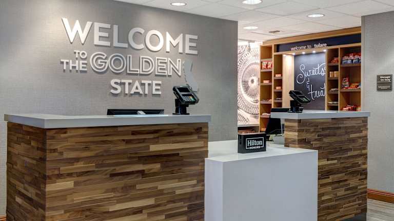 Das Hampton Inn & Suites Tulare bietet 86 Nichtraucherzimmer auf vier Etagen. Das Hotel verfügt über einen Aufzug und freundliches Personal an der Rezeption, das Gäste bei Fragen unterstützt. Zu den Einrichtungen zählen eine Gepäckaufbewahrung, ein Safe, ein Geldautomat und eine Bibliothek. Zudem stehen ein TV-Raum, ein Spielzimmer und ein Garten für Erholung zur Verfügung. Die Unterbringung bietet auch Parkmöglichkeiten, einen Transferservice und Zimmerservice. Ein Shuttlebus sorgt für zusätzliche Mobilität.