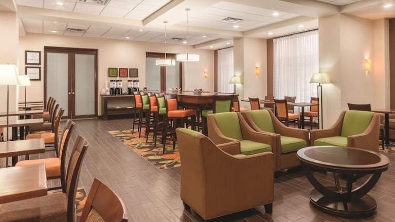 Das Hampton Inn By Hilton Edmonton South bietet eine heimelige Atmosphäre und umfasst 100 Zimmer. Die Unterkunft verfügt über einen Aufzug, einen Kamin und einen TV-Raum. Zu den Serviceleistungen zählen eine Gepäckaufbewahrung, ein Safe, eine Wechselstube, ein Geldautomat und ein Getränkeautomat. Das Hotel bietet zudem eine Reihe von behindertengerechten Einrichtungen und verfügt über einen 24-Stunden-Sicherheitsdienst, Zimmerservice und eine Münzwäscherei. Die Nutzung von WLAN ist kostenfrei.