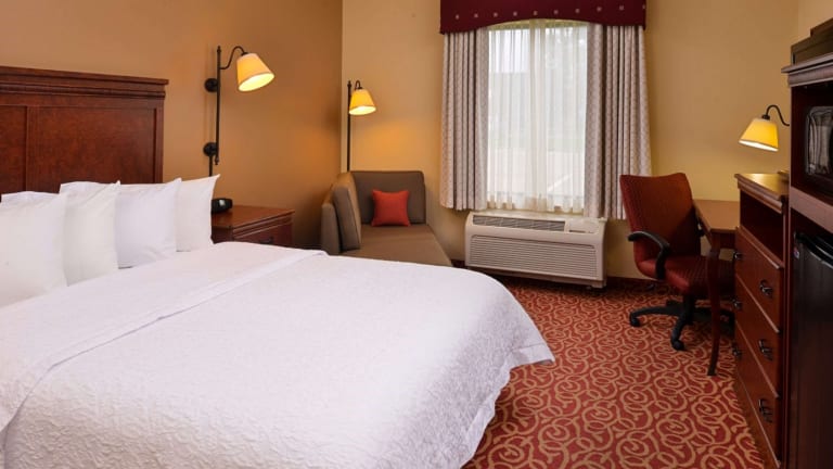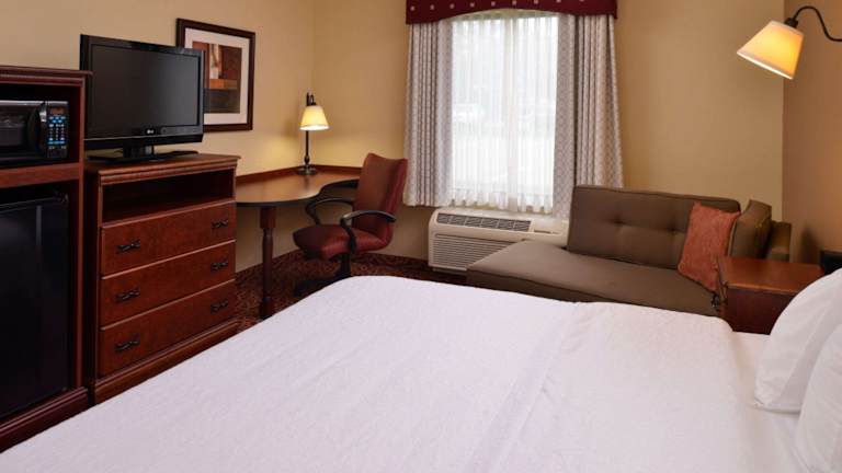 Die Zimmer im Hampton Inn Lincoln sind mit einer individuell regelbaren Klimaanlage sowie Heizung ausgestattet. Jede Einheit verfügt über ein Kingsize-Bett oder ein Sofabett, einen Schreibtisch, einen Kühlschrank, eine Mikrowelle sowie eine Tee-/Kaffeemaschine. Die Gäste finden in ihren Zimmern ein TV-Gerät mit Kabel- oder Satellitenempfang sowie ein Radio. WLAN ist ebenfalls vorhanden, und eine Tageszeitung liegt bereit. Das Badezimmer bietet sowohl eine Dusche als auch eine Badewanne und ist mit einem Haartrockner ausgestattet. Das Hotel bietet sowohl Familien- als auch Nichtraucherzimmer an.