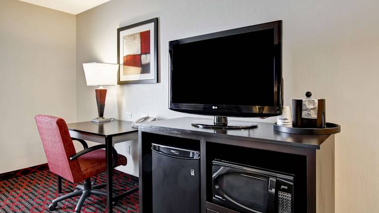 Die Zimmer sind mit Klimaanlage, Heizung, Kühlschrank, Mikrowelle und einer Tee-/Kaffeemaschine ausgestattet. Zudem gibt es einen Schreibtisch, einen TV und kostenloses WiFi. Die Badezimmer verfügen über eine Dusche und Badewanne, ausgestattet mit einem Haartrockner und Kosmetikartikeln. Rollstuhlgerechte Zimmer sind ebenfalls buchbar, und Gäste können auf Familien- und Nichtraucherzimmer zurückgreifen.