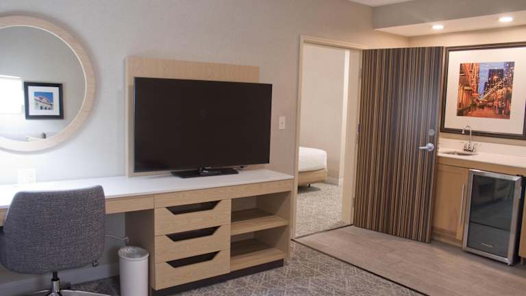 Die Zimmer bieten Bequemlichkeiten wie Klimaanlage, Heizung, Teppichböden und eine Ausstattung mit einem Doppel-, Queensize- oder Kingsize-Bett sowie einem Schlafsofa. Jedes Zimmer ist mit einem Schreibtisch, einem Kühlschrank, einer Mikrowelle und einer Tee-/Kaffeemaschine ausgestattet. Zudem stehen ein Safe und eine Minibar zur Verfügung. Ein TV-Gerät mit Kabel- oder Satellitenempfang sowie kostenfreies WiFi sind ebenfalls vorhanden. Die Badezimmer verfügen über eine Dusche und eine Badewanne sowie über einen Haartrockner und Kosmetikartikel.