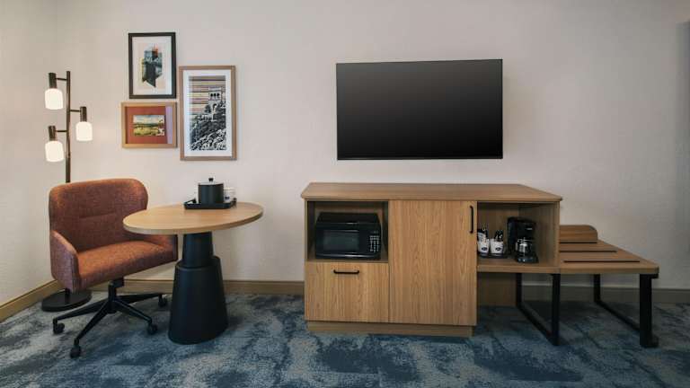 Die Zimmer sind mit Klimaanlage, Heizung, Schreibtisch, Kühlschrank, Mikrowelle sowie einer Tee-/Kaffeekocher ausgestattet. Zudem gibt es ein Telefon, TV-Gerät und kostenloses Wifi. Die Badezimmer verfügen über eine Badewanne sowie eine Whirlwanne und sind mit einem Haartrockner ausgestattet. Nichtraucherzimmer und rollstuhlgerechte Zimmer mit barrierefreiem Badezimmer sind ebenfalls verfügbar.
