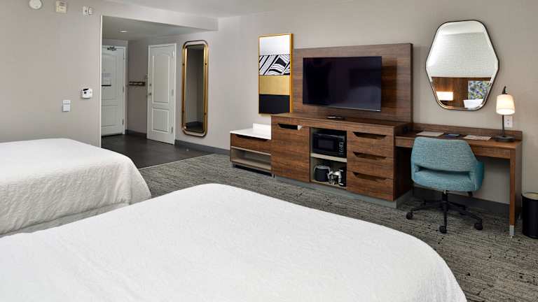 Das Hotel Hampton Inn & Suites Las Vegas Airport bietet 129 Nichtraucherzimmer über 4 Etagen. Die Einrichtung umfasst einen Empfangsbereich mit freundlichem Personal, Garderobe, Gepäckaufbewahrung, Safe, Geldautomat und Getränkeautomat. Ein Aufzug sorgt für die Erreichbarkeit der Etagen. WLAN steht den Gästen zur Verfügung, und es gibt einen Konferenzraum sowie behindertengerechte Einrichtungen. Kinder können im Spielplatz spielen. Weitere Annehmlichkeiten sind ein Zeitungsstand, ein Souvenirshop und eine Garage, in der die Gäste gegen Gebühr parkieren können. Ein eigener Shuttlebus steht zur Verfügung.
