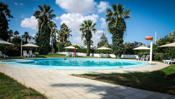 Das Hotel Hannibal Palace verfügt über einen Außenpool mit einem separaten Kinderbereich. Hier können Sie sich entspannen und Sonne tanken. Für aktive Gäste werden verschiedene Sportmöglichkeiten angeboten, darunter Tennis, Beachvolleyball, Minigolf und Golf (gegen Gebühr). Im Wellnessbereich des Hotels können Sie sich mit einer Massage verwöhnen lassen oder in der Sauna entspannen. Für Unterhaltung sorgt auch eine Disco.