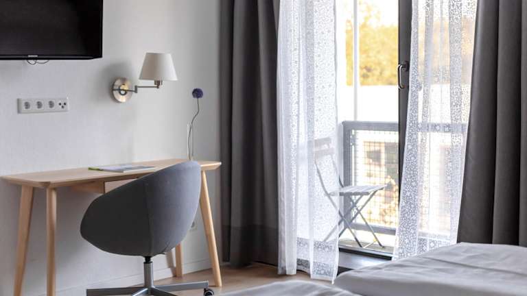 Die großzügigen, renovierten Komfort-Zimmer sind mit Boxspring-Betten, Flachbildfernseher (Sat-TV), WLAN und Bad (Dusche/WC, Haartrockner) ausgestattet. Die Zimmer haben bodentiefe Fenster, die meisten auch einen kleinen französischen Balkon mit Ausblick in den Teutoburger Wald oder in den Innenhof.