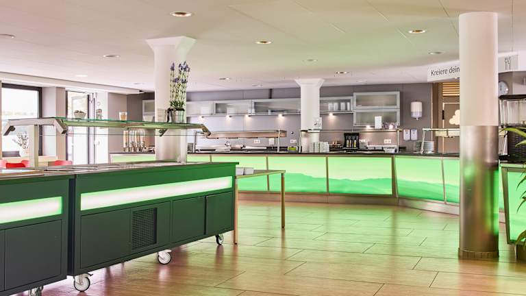 Die hauseigene "Hermanns Küche" bietet frische und regionale Buffets. Kein à la carte. Reichhaltiges Frühstücksbuffet ab 6.30 Uhr. 24 Stunden Kaffee- und Teespezialitäten in der "Kaffee@Lounge".