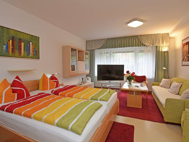 - Doppelzimmer mit Küchenbereich, Veranda nicht direkt vor Zimmer und Studios mit Veranda am Studio - Einzelzimmer und Einzelzimmer- Studios Zimmer teilweise mit Miniküche, alle Zimmer mit DU/ WC Internetanschluß W-LAN , große TV- Geräte