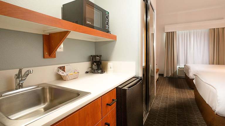 Die Suiten sind mit einer Klimaanlage, Heizung, einem Kühlschrank, einer Mikrowelle, Tee-/Kaffeemaschine und kostenfreiem Wifi ausgestattet. Jedes Zimmer verfügt über ein eigenes Bad mit Dusche, Haartrockner und kostenlosen Pflegeprodukten. Für Familien und Nichtraucher stehen spezielle Zimmer zur Verfügung.