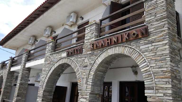 Das Hotel Hellinikon in Ouranoupoli ist eine ruhig gelegene Unterkunft, nur 200 m vom Strand entfernt. Es bietet komfortable Zimmer mit kostenfreiem WLAN und einen freundlichen Service. Genießen Sie ein traditionelles griechisches Frühstück und erkunden Sie die umliegenden Sehenswürdigkeiten wie die archäologische Stätte von Zygos und den Berg Athos.