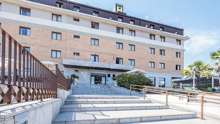 Das Hotel Hidalgo befindet sich in Esquivias, zwischen Toledo und Madrid. In der Nähe liegt der Warner Bros Park. Das Stadtzentrum von Esquivias mit verschiedenen Bars und Clubs erreicht man in etwa 5 Gehminuten. Restaurants sind nach ca. 5 Minuten Fahrzeit erreichbar. Öffentliche Verkehrsmittel sind nur 500 m entfernt, während die Städte Illescas und Aranjuez etwa 7 km bzw. 18 km entfernt liegen. Einkaufsmöglichkeiten befinden sich in Toledo und im Nassica Einkaufszentrum, das in etwa 15 Minuten mit dem Auto zu erreichen ist. Das nächstgelegene Skigebiet Xanadu ist nach ungefähr 35 Minuten erreichbar. Der internationale Flughafen Madrid Barajas ist etwa 50 km entfernt.