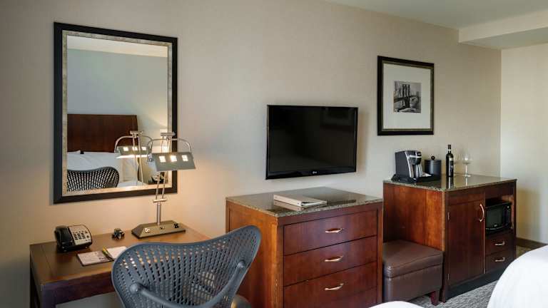 Die Zimmer sind klimatisiert und verfügen über eine individuell steuerbare Heizung. Zur Standardausstattung gehören ein Doppelbett, ein Queensize-Bett oder ein Kingsize-Bett, ein Safe sowie ein Schreibtisch. Das Bad ist mit einer Dusche und einer Badewanne ausgestattet. Zudem ist ein Minikühlschrank und eine Tee-/Kaffeemaschine vorhanden. Die Zimmer sind mit Teppichböden ausgelegt und bieten einen Blick auf die Stadt oder den Innenhof. WLAN ist in den Zimmern ebenfalls verfügbar.