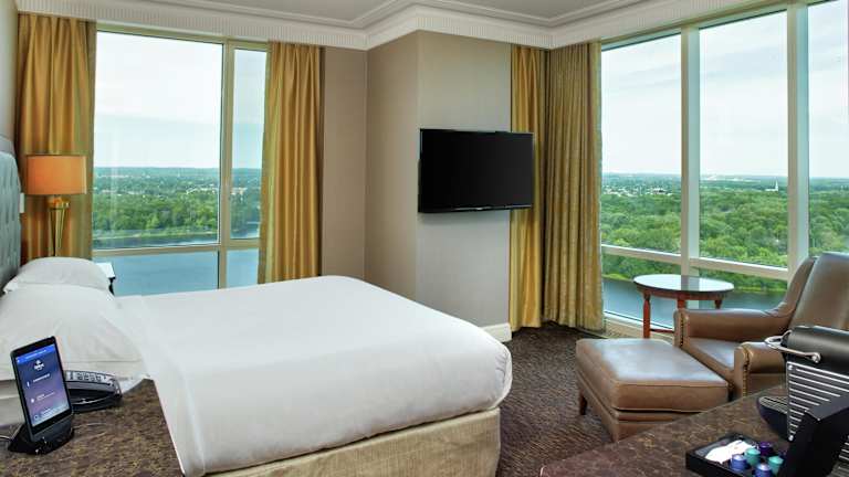 Das Hotel Hilton Lac Leamy bietet eine elegante Architektur und verfügt über insgesamt 349 Nichtraucherzimmer. Gäste profitieren von einer freundlichen Rezeption, die bei allen Fragen behilflich ist. Zur Ausstattung gehören unter anderem eine Garderobe, Gepäckaufbewahrung, Safe, Wechselstube, Geldautomat und Getränkeautomat. Internetzugang steht über Wifi zur Verfügung. Auch behindertengerechte Annehmlichkeiten sind vorhanden. Ein heimeliger Kamin und diverse Geschäfte bereichern das Angebot. Für gastronomische Zwecke steht ein Restaurant, ein Café und eine Bar bereit.