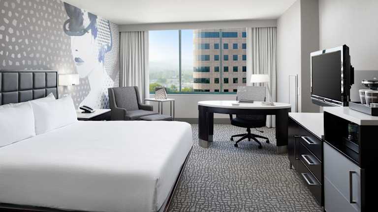 Die klimatisierten Zimmer im Hilton Woodland Hills/Los Angeles sind modern eingerichtet und bieten Annehmlichkeiten wie HDTV und eine Kaffeemaschine. Im eigenen Bad finden Sie einen Haartrockner und kostenlose Pflegeprodukte vor. Einige Zimmer verfügen über einen Balkon oder eine Terrasse.