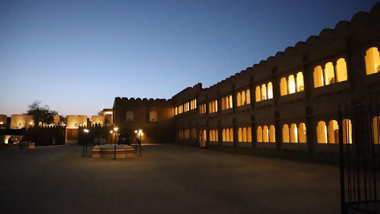 Das Himmatgarh Palace Heritage Boutique Hotel in Jaisalmer ist eine charmante Unterkunft, die Sie mit einem schönen Garten und einer entspannten Atmosphäre empfängt. Genießen Sie den Außenpool und das kostenfreie WLAN. Das Hotel bietet komfortable Zimmer und ein Restaurant mit köstlicher indischer und chinesischer Küche. Der freundliche Service und der Kinderspielplatz sorgen für einen angenehmen Aufenthalt.