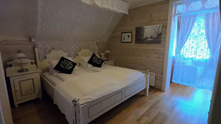 Die Zimmer im Hotel Hjelle sind klassisch eingerichtet und bieten ein eigenes Bad. Einige sind im Nebengebäude untergebracht und verfügen über ein Himmelbett sowie einen Balkon mit Aussicht über den Fjord.