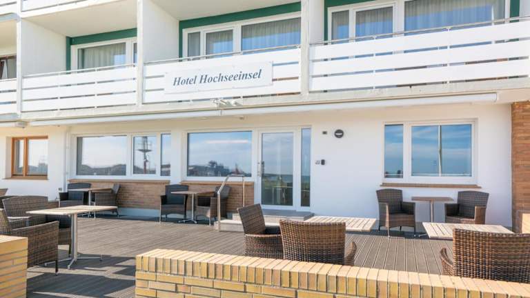 Das Hotel Hochseeinsel bietet modern eingerichtete Zimmer mit Flachbild-Sat-TV und Minibar. Jedes Zimmer verfügt über ein eigenes Bad mit Haartrockner und kostenlosen Pflegeprodukten. Einige Zimmer bieten einen schönen Blick auf das Meer oder verfügen über einen Balkon. Zudem gehört eine gemütliche Gemeinschaftsterrasse zum Hotel.