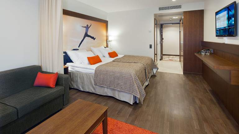 Die Zimmer sind ausgestattet mit Klimaanlage und Heizung, einem Queensizebett, einem Sofabett sowie einem Balkon oder einer Terrasse. Zu den Annehmlichkeiten gehören ein Safe, eine Minibar, ein Schreibtisch, ein Telefon, ein TV-Gerät mit Satellitenempfang und Wifi. Die Badezimmer verfügen über Dusche und Badewanne. Rollstuhlgerechte Zimmer sind ebenfalls verfügbar.