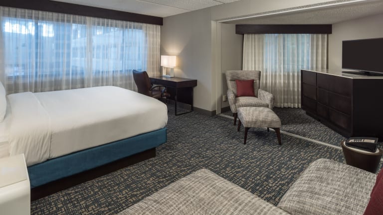 Die Zimmer sind ausgestattet mit einer Klimaanlage, einem Doppelbett, einem Sofa und einem geräumigen Badezimmer mit Dusche und Badewanne. Jedes Zimmer verfügt über einen Safe, einen Kühlschrank sowie eine Tee- und Kaffeemaschine. Zusätzliche Bequemlichkeiten umfassen einen Fernseher, WiFi Zugang, und die Möglichkeit zur Anforderung von Zustellbetten. Rollstuhlgerechte Zimmer sind verfügbar.