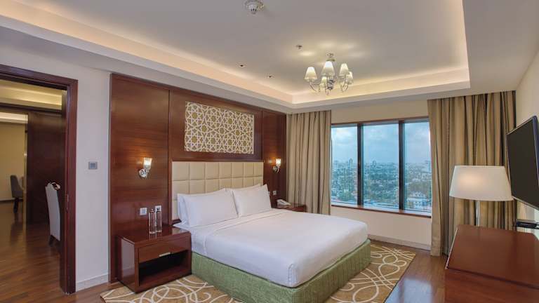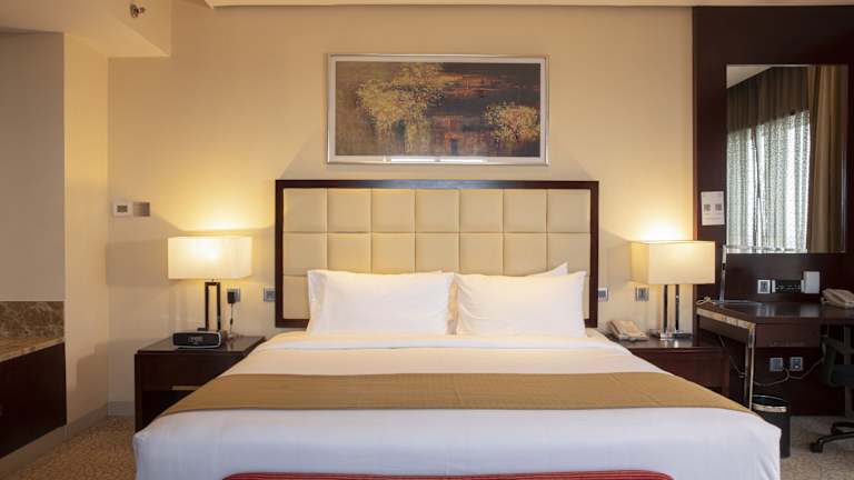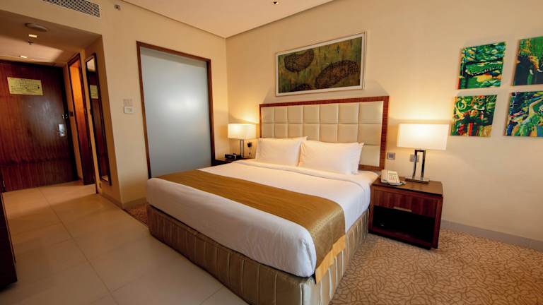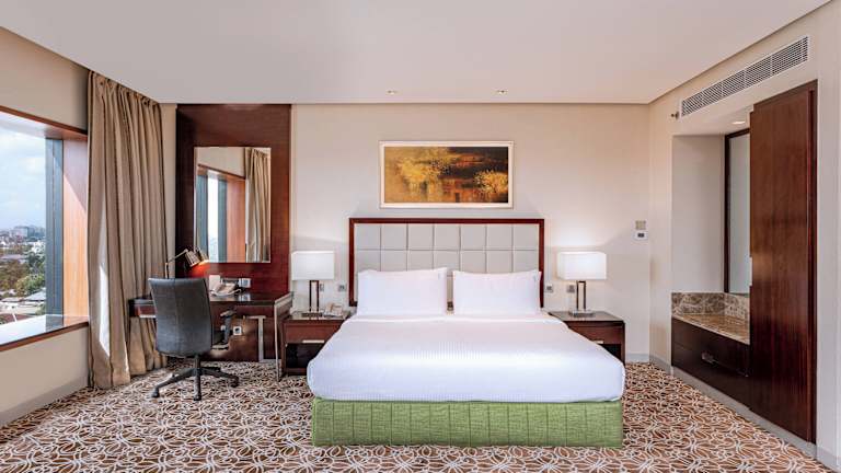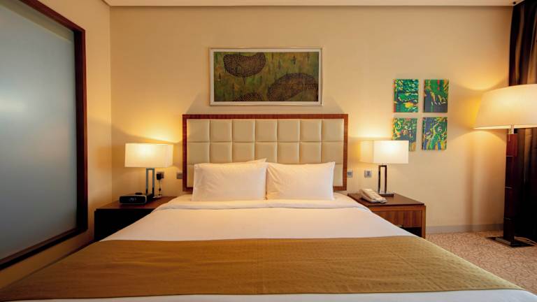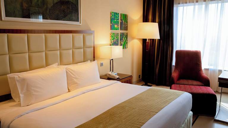 Die Zimmer sind modern gestaltet und verfügen über Klimaanlage sowie Heizung. Aus den Zimmern haben die Gäste Zugang zu Balkon oder Terrasse mit Stadtblick. Zur Zimmerausstattung gehören ein Safe, eine Minibar, ein Schreibtisch, ein Kühlschrank und eine Tee-/Kaffeemaschine. Ein TV-Gerät mit flachem Bildschirm sowie ein Telefon sind ebenfalls vorhanden. Die Badezimmer sind mit einer Dusche und einer Badewanne ausgestattet. Für zusätzliche Bequemlichkeit sorgen Haartrockner, Bademäntel, Kosmetikartikel und Handtücher. Es sind auch rollstuhlgerechte Zimmer verfügbar.