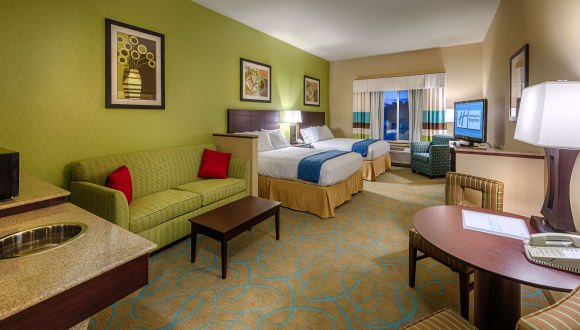 Das Hotel Holiday Inn Express Hotel & Suites Red Bluff hat 80 Zimmer und ist ausgestattet mit einem Aufzug. Es bietet zahlreiche Serviceleistungen, darunter eine Gepäckaufbewahrung und einen Getränkeautomaten. Das hilfsbereite Personal an der Rezeption unterstützt die Gäste bei ihren Anliegen. Zur weiteren Ausstattung zählen ein Spielzimmer sowie rollstuhlgerechte Einrichtungen. Das Hotel hat 2012 eröffnet und verfügt über ein Indoor- und Outdoor-Pool sowie einen Wellnessbereich mit Whirlpool.